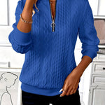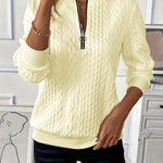 Este suéter de punto trenzado con cremallera para mujeres combina calidez con moda moderna, convirtiéndolo en un artículo esencial en tu guardarropa casual. Hecho de una tela suave y duradera, ofrece un ajuste relajado que asegura que te veas elegante mientras te mantienes abrigada.