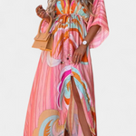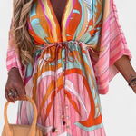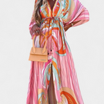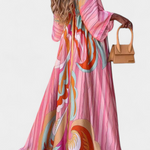 Una explosión de color para días donde la libertad es el mejor estilo. El vestido Joelle combina un vibrante estampado arcoíris con una silueta holgada y fluida que envuelve con frescura. Su escote en V y mangas murciélago añaden movimiento y elegancia sin esfuerzo.